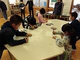 5時間目の授業の様子です。3年生は図工でのこぎりを使って切った木材に色を付けていました。1年生は音楽で鍵盤ハーモニカのきらきら星を練習していました。みんな頑張っています。