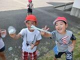 1年生が生活科でシャボン玉をしました。ストローをうまく使って、たくさん飛ばせるように工夫していました。