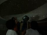 4年生が理科の勉強で星の観察をしました。理科室にプラネタリウムがあるので、星の動きがよく分かります。自分の星座についてよく聞いていました。