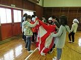 今日は体育館に紅白幕を張りました。隙間ができないように気をつけながら、4・5年生で協力して無事張ることができました。