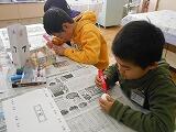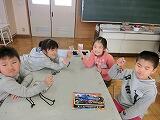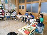 今日は雨の日だったので、休み時間も教室で過ごしていました。1・2年生は積み木やこま遊び、5年生はお絵かきクイズをしていました。