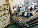 工場の中では、お団子を作っているところ、おもちを作り薄くのばしているところ、型を抜いて乾かしているところ、焼いているところ、味付けをしているところ、袋に詰めているところなどを見ました。途中、焼きたてのおせんべいを食べさせてもらい、子どもたちはとても喜んでいました。