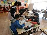 おおみや幼稚園から、次年度本校に入学する園児が来校し、1年生と交流しました。自己紹介をした後、輪投げや魚釣りゲーム等で遊びました。1年生はお兄さん・お姉さんとして、しっかりと接することができました。