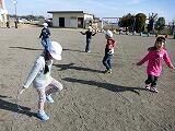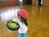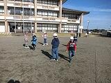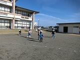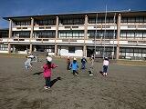 子どもたちは早速、ドッジビーを使って遊び始めました。投げるのも取るのも最初はぎこちありませんでしたが、だんだんとコツを掴んできたようです。早く、全児童でドッジビーの試合ができるといいですね。