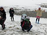 休み時間に子どもたちは雪遊びで楽しんでいました。