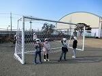 サッカーゴールのネットが古くてボロボロでしたが、新しいネットになりました。真っ白なネットに子どもたちも大喜びです。今日も子どもたちは元気に遊んでいました。うがい手洗いはしっかり行っています。