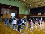 今日の表現運動は音楽に合わせて、学年ごとに難易度の違うステップや動きにチャレンジしました。高学年用のステップはキックやターンなどが少し難しく、慣れるまで先生方も苦戦していました。
