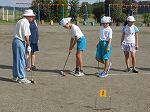 10月に行われる国府地区ゲートボール大会に向けて練習が始まりました。地域の荒川さんに教えていただきました。ゲートを通すのが難しく、子どもたちは悪戦苦闘していました。