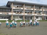 晴天の下、子どもたちは元気に校庭を走っていました。