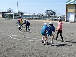 卒業式を明日に控え、今日は全員でしっぽ取りゲームをしました。なかよし班ごとにチーム対抗で勝負しました。6年生と最後の遊びを楽しんでいました。