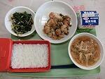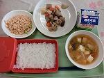 12月4日(金) ごはん、焼き鳥風煮、ほうれん草ともやしの磯か和え、大根と油揚げのみそ汁、牛乳