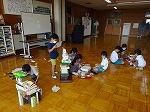 今日は1年生が算数の勉強で箱を高く積み上げていました。どんな風にすると高く積めるか工夫しながらグループごとに作業していました。