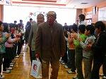 2月6日【木)に様々な形で本校に関わってくださっているボランティアの方々をお招きしてささやかな感謝の会を開催しました。国府南小学校の子どもたちは,本当に多くのボランティアの方々に支えられ,豊かな学校生活を送っています。この会では,お世話になっている地域の方々に感謝の気持ちを表すために,「ありがとう列車」(肩たたきをします。)や出し物(朗読)を行いました。そして,最後にささやかなプレゼント(メッセージカード等)をさしあげました。子どもたちの感謝の気持ちをしっかり形に表すことができた会だったと思います。