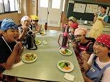 今日は5年生が調理実習をしました。メニューは野菜のサラダです。にんじんやブロッコリーを上手に切って、ゆでて・・・ドレッシングをかけておいしくできました。