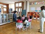 朝のおはなし会が始まりました。今年度は、水曜日に実施の予定です。メンバーは、おはなしボランティア7名で担当していただきます。子どもたちは、真剣に耳を傾けていました。