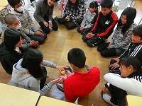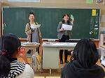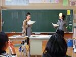 小規模校から大規模校の中学校に進学する子どもたちは、「友だちできるかな」「一人にならないかな」など、不安な気持ちでいっぱいです。そこで、「自分らしく、気持ちよく、まわりの人とかかわるにはどうしたらいいか」、紙芝居と土沢先生と担任によるロールプレイングをとおして教えていただきました。