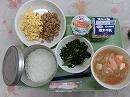 ひじきごはん・肉団子・じゃがいもと油揚げの味噌汁・牛乳