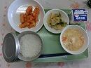 ごはん・いかとエビのチリソース炒め・大根の中華漬け・野菜と卵の中華風スープ・牛乳