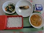 6月10日(水)ごはん、さばのスタミナ焼き、ほうれん草とキャベツのおひたし、じゃがいもと油揚げのみそ汁、牛乳