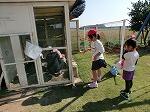 飼育委員さんを中心に全児童でうさぎのお世話をしています。学年ごとにえさや水、小屋のそうじなどを分担して行います。上級生に教えてもらいながら1年生も上手にできるようになりました。