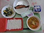 10月27日(火) とち介ランチ ごはん、鮭の南部焼き、さつまいものみそ汁、ほうれん草ともやしのおひたし、栃木市産巨峰ゼリー、牛乳
