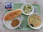 10月23日(金) ごはん、鶏肉とじゃがいものみそがらめ、キャベツの和風サラダ、五目スープ、牛乳