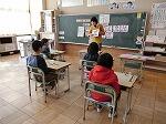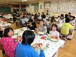 1・2年生が食に関する指導を行いました。栄養士の梅山先生に来校していただき、楽しい給食にするためにはどんなことに気をつけたらよいのか教えていただきました。姿勢良く食べる、三角食べをするなどマナーについて考え、自分のがんばり目標を立てました。