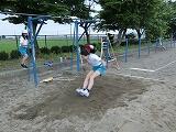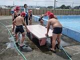 今日は今年度最初の水泳学習で、4~6年生がプールに入りました。低学年用の足場もきれいに洗って設置してくれました。これからのプール活動が楽しみです