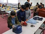 警察署では、警察で働く人の話を聞いた後、警察官が使う道具を実際に触らせてもらいました。