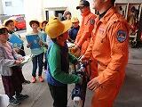 消防本部では、説明を聞いた後、煙道体験や消火器体験をさせてもらいました。また、消防車や救急車を実際に見せてもらい、レスキューの道具なども代表が持たせてもらいました。