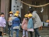 1年生が近くの星宮神社に校外学習に行きました。銀杏の紅葉がとてもきれいで、秋の自然を感じることができました。鬼ごっこをする予定でしたが、ぎんなんがたくさんあったので、にらめっこになりました。