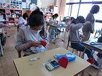 6年生を送る会に向けて、5年生がプレゼント作りをしています。何ができるかはお楽しみですが・・・裁縫をしました。家庭科で習った縫い方を確認して、練習しました。
