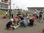 今日の「緑を守り隊」はプランターに花の苗を植えました。1年生は6年生と協力して丁寧に植えることができました。残りの時間は校庭の除草をしました。草がたくさん生えてしまうので、大変です。