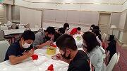 スポーツクラブは体育館でサッカーをしました。ボールを浮かせてはいけないルールでみんなで楽しむことができました。文化クラブはスライム作りをしました。いろいろな色で楽しみながら作っていました。
