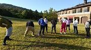 今日の表現運動は音楽に合わせて、学年ごとに難易度の違うステップや動きにチャレンジしました。高学年用のステップはキックやターンなどが少し難しく、慣れるまで先生方も苦戦していました。