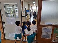 この日、竜巻が来た想定で、全校での避難訓練。より安全な場所を見つけて、頭を守る「ダンゴムシ」で避難しました。続いて、校庭に避難して、自家用車など保護者のお迎えによる引き渡し訓練です。みなさん無事下校できました。ご協力ありがとうございました。