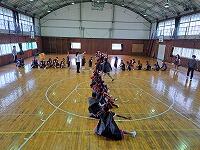↑ 「国庁太鼓」の演奏。この日は降雨の心配もあって体育館で運動会の最後に実施。体育館に太鼓の音が響き渡りました!演奏後に大喝采!