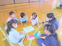 この日、縦割りの「なかよし班」に分かれて、宿題や自主学習の仕方について話合いました。「宿題など家庭学習は、決まった時間にやっていますか?」「家で学習するときは、遊びながらでなく集中してやっていますか?」など、7項目について、1~6年生が混じってできているかどうかについて話合いました。みんな真剣に話し合いましたね。