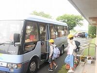 今日、3,4時間目に、1年生が校外学習で星宮神社に行ってきました。途中、田村町駐在所の方に出迎えてもらい、片道15分くらいの道のりを歩きました。生活科の学習で、安全に道路を歩く学習や、夏の初めの神社の様子を観察するなどしてきました。神社には、直径2mを超えそうな幹の銀杏があり、その回りで遊んだり観察したりして帰ってきました。