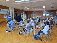 この日、南部サロンの皆さん十数名の方々が来校され、1~6年生児童と一緒にラジオ体操を行いました。南部サロンは、国府地域包括支援センターの活動の一つで、地域交流として、本校に年4回来校しています。今回は、ラジオ体操の後、1階のふれあい広場に移動して、1時間程皆さんで研修をされていました。