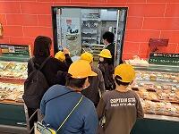 2番目に、スーパーマーケット。普段入ることのできないバックヤードの見学をさせていただきました。大きな冷凍庫などに入って・・・とても寒かったですね。