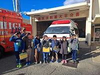 最後に、消防署大平分署に行きました。途中、救急車の出動が・・・結局出動しませんでしたが、その直前までの真剣な様子を見ることができました!ラッキーでしたね。施設の方みなさん出てきてくださり、たくさん体験させていただきました。消防士になりたい人も3年生の中にいて、なるために必要なことを教えていただきましたね。