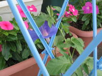 1年生の育てているアサガオ、先週末に1輪咲きましたが、月曜日にはしぼんでいました。