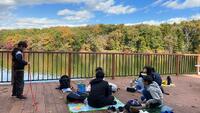 お昼は総合運動公園で食べました。紅葉がきれいです。落ち葉やどんぐりもたくさん。