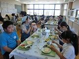 今日は6月のお誕生給食を行いました。今日から職場体験に東陽中生が来ているので、一緒に食べました。月に一度ですが楽しく会食しています。