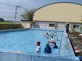 昨日は台風の影響で2時間遅れての始業となりましたが、子どもたちはみんな元気に登校しました。保護者のみなさまご協力ありがとうございました。プール納めの日に、5・6年生が着衣水泳を実施しました。みんなで「浮いて待て」の練習をしました。