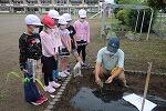 2年生がさつまいもの苗を植えました。秋にたくさん収穫するのが楽しみです。
