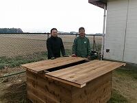 12月11日 本校のSDGsの取組・コンポスト活動の中核を担うコンポストがリニューアルしました!コミスク推進委員の青栁さんといぶきワークスさんが、コンポストの丈夫な枠組みとフタを新しく作ってくださいました。早速、活用しています。ありがとうございます。