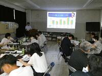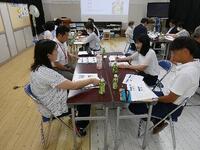 その後、新体力テストの結果を踏まえて各班でグループ協議を行いました。議題は「西方地域の児童生徒の体力向上のために、学校・家庭・地域でできることは何か」です。
