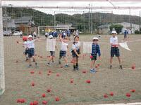 健康委員が考えた内容は、スキップ、けんけん足、全力疾走、ストラックアウトを組み合わせたサーキットトレーニングです。これを、けが0(ゼロ)で安全に行うために、コースを分けたり、玉入れ用の玉を使ったりして、工夫を重ねてきました。